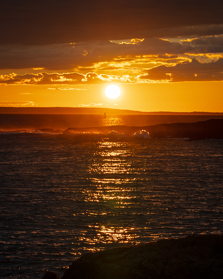 So I kept moving. Just down the road, I wandered into the Ship Harbor area. The crowds were nonexistent there, and the quiet felt immediate and complete. As I hiked along the rocky shoreline, scanning the horizon, the clouds overhead were shifting and sliding across the sky. I knew I was taking a gamble staying put.