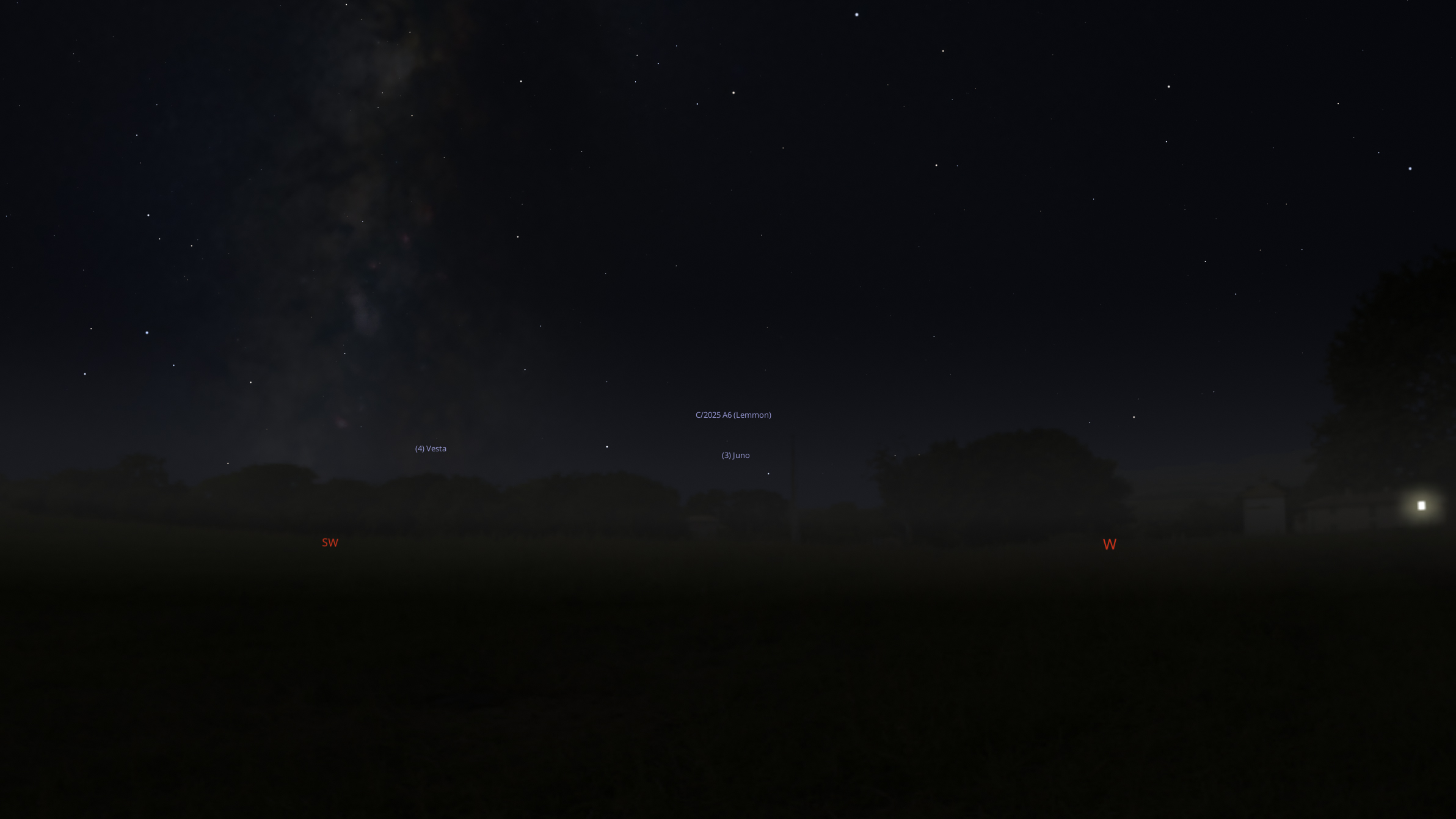 Using Stellarium, I mapped out the path of Comet C/2025 A6 (Comet Lemmon) and saw that it would be hugging the west-southwestern horizon just after sunset. That detail changed everything. I had a narrow one hour window before the moon would rise and wash the sky in silver light. Miss that window and the contrast would be gone.