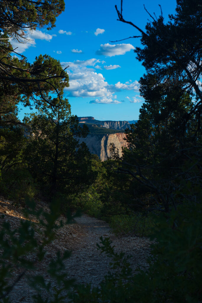 I will admit that the first half of the hike is not especially scenic. Much of the trail winds through open forest and flat terrain, without the dramatic views that Zion is known for. But if you wander slightly off the main path in safe areas, you begin to realize you are standing on a high plateau. From certain vantage points, the surrounding canyons open up, offering glimpses of the scale that lies ahead.