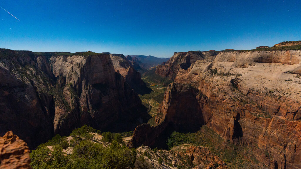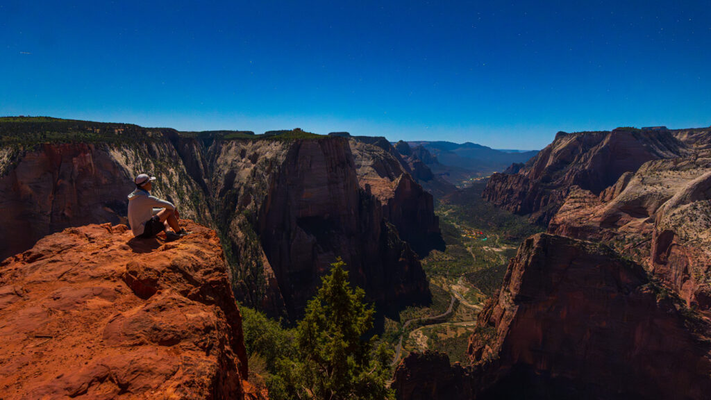 Standing there alone, high above Zion Canyon, watching the landscape glow under nothing but moonlight. It’s one of those moments that stays with you.